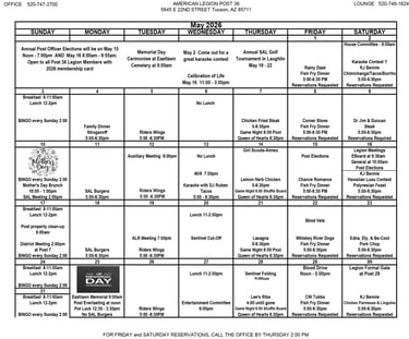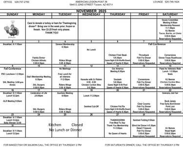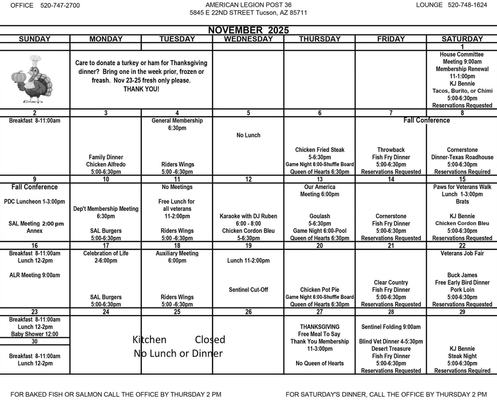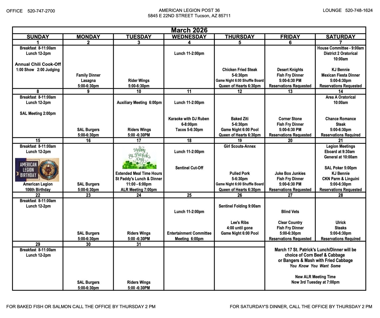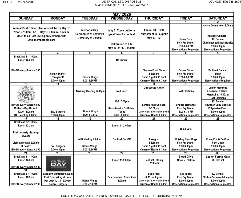 From the moment you step into Post 36, you feel at Home, and part of Our Family! One of the largest and most active posts in Arizona, our post home features a lounge plus an annex and main hall for special events.