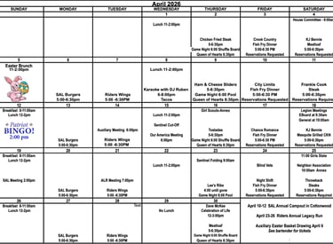 There's lots to do, with events all month long. Karaoke, Lottery, Game Nights - Pool & Shuffle Board, Holiday Events, Queen of Hearts Drawing each Thursday, awesome Food from our Kitchen, dinners with live bands, large-screen football, two golf clubs, and much more!