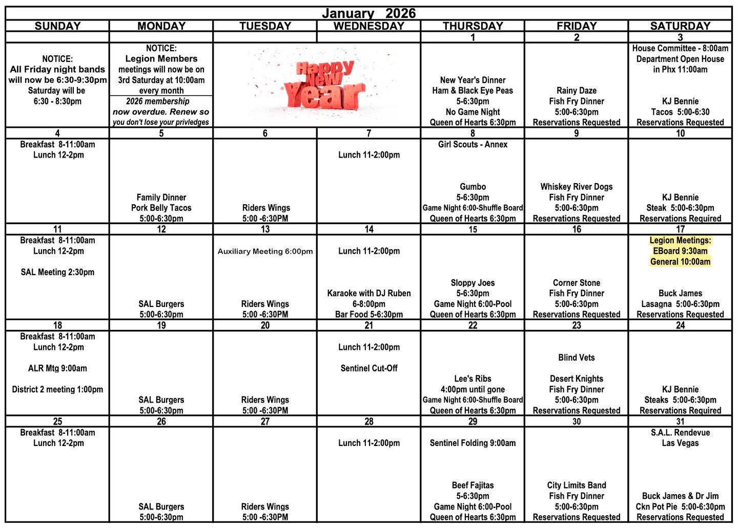 From the moment you step into Post 36, you feel at Home, and part of Our Family! One of the largest and most active posts in Arizona, our post home features a lounge plus an annex and main hall for special events.